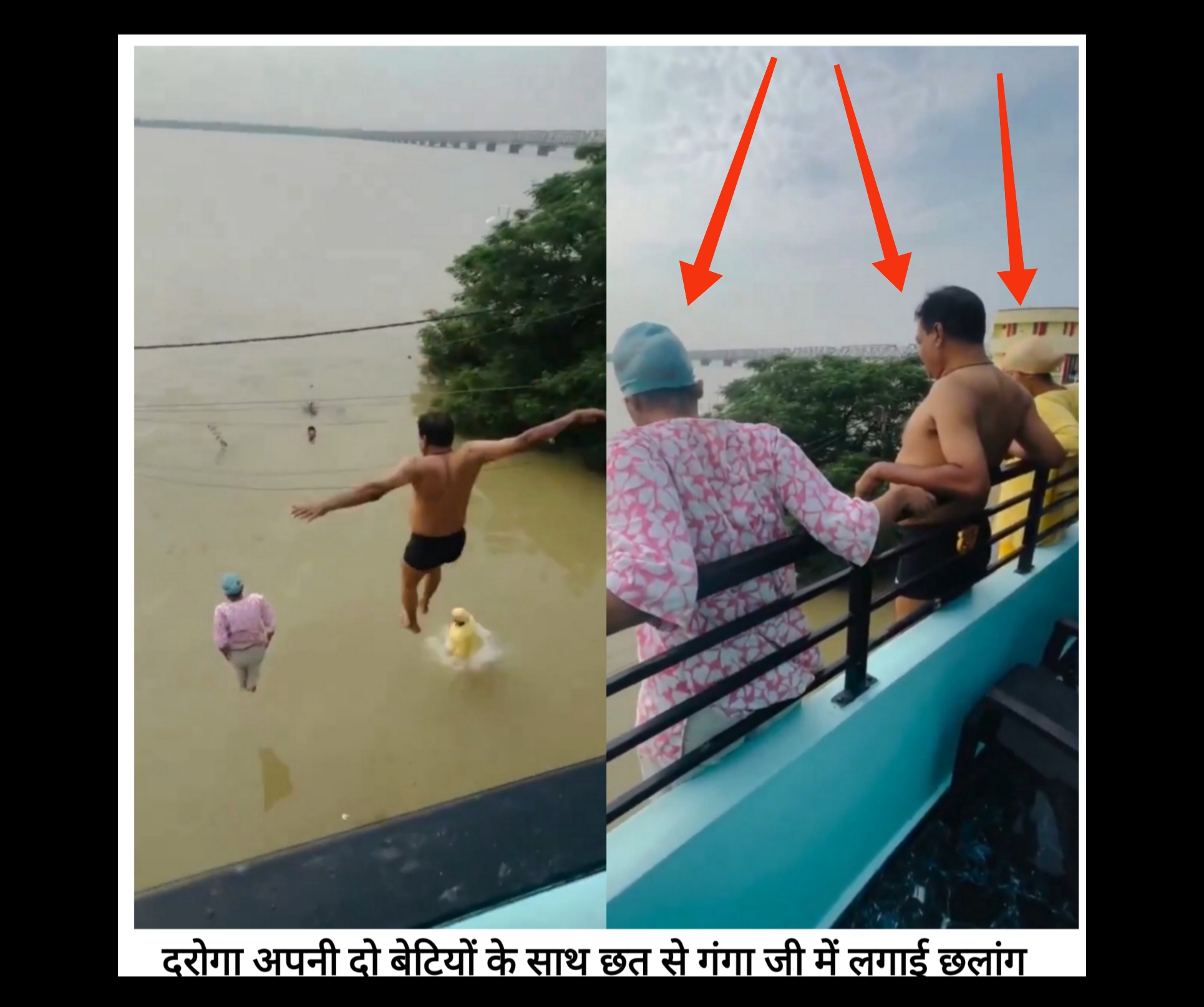 दरोगा ने अपनी दो बेटियों के साथ छत से गंगा जी में  लगाई छलांग.. वायरल वीडियो को 24 मिलियन से ज्यादा बार देखा जा चुका हैं