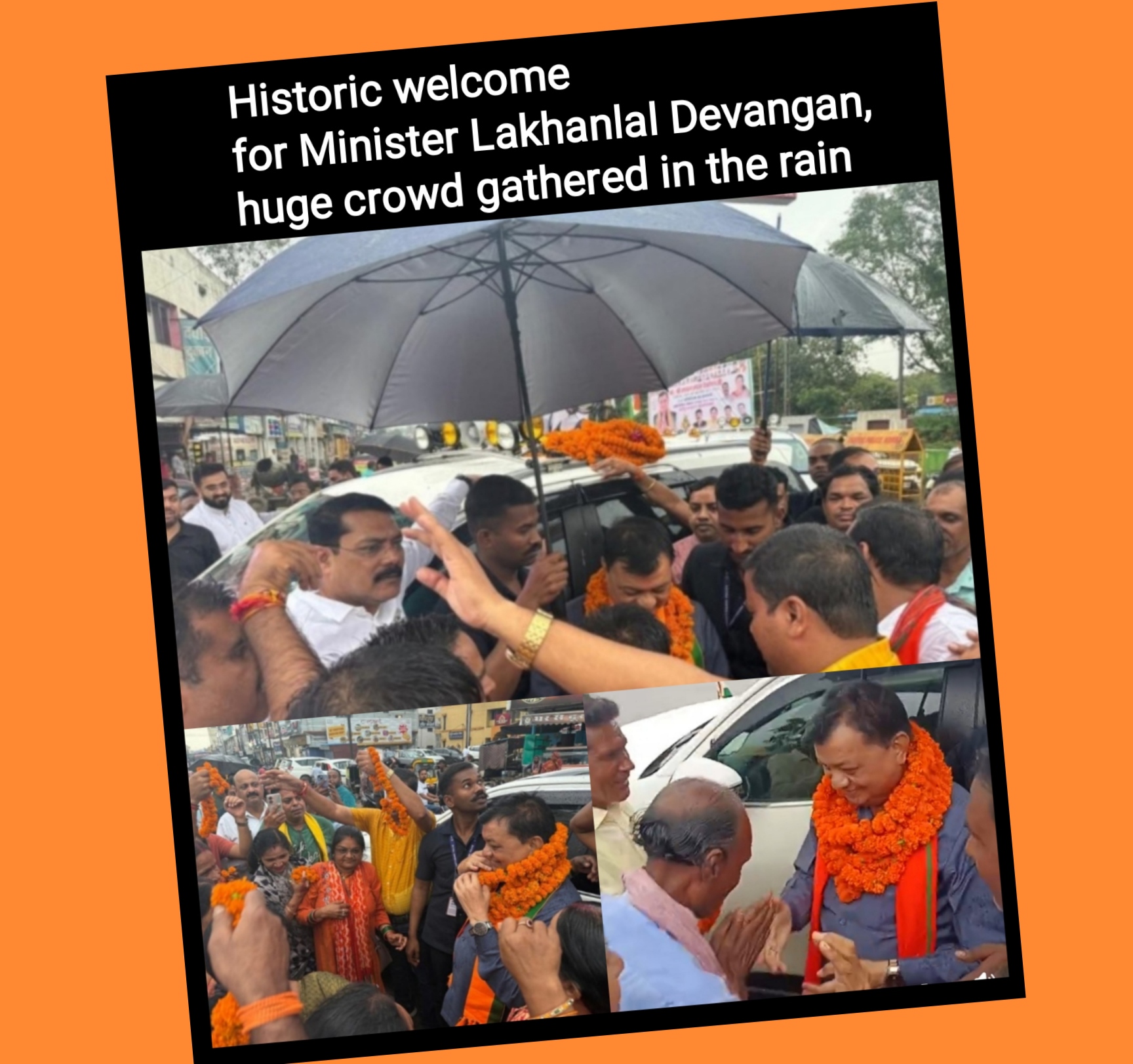 बारिश के बावजूद, भाजपा कार्यकर्ताओं और आम लोगों का जनसैलाब उमड़ पड़ा। फूल-मालाओं, ढोल-नगाड़ों और आतिशबाजी से पूरा शहर भाजपा के रंग में रंग गया।