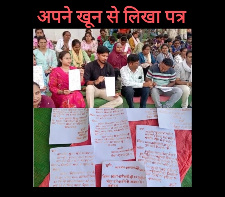 एनएचएम कर्मचारियों की हड़ताल: खून से लिखा पत्र भेजकर सरकार का ध्यान आकर्षित करने की कोशिश