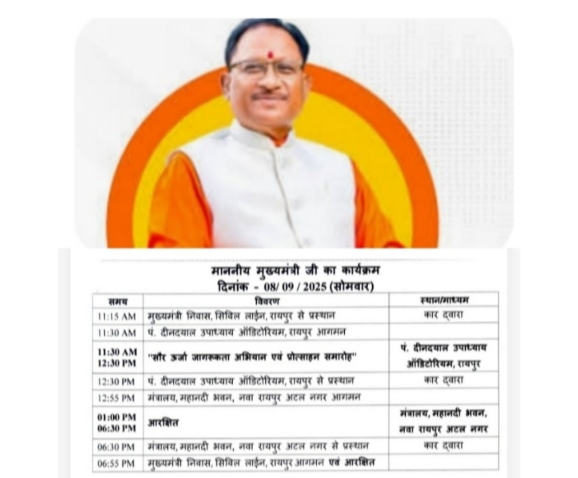 छत्तीसगढ़ रायपुर, 8 सितंबर। मुख्यमंत्री विष्णु देव साय आज साढ़े पांच घंटे मंत्रालय में गुजारेंगे। सीएम दोपहर 1 बजे महानदी भवन पहुंचेंगे। इस सरकारी कामकाज निपटाएंगे। उनके अनुमोदन के लिए लंबित फाइलों पर हस्ताक्षर कर क्रियान्वयन का मार्ग प्रशस्त करेंगे। इस दौरान वे कल होने वाली कैबिनेट के प्रस्तावों पर भी चर्चा करेंगे। इसके अलावा कुछ तबादलों पर भी आदेश कर सकते हैं।