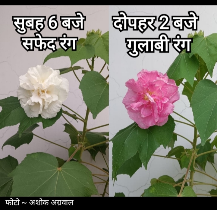 कोरबा:वरिष्ठ अधिवक्ता एवं अग्रोहा मार्ग निवासी अशोक अग्रवाल की छत की बागवानी में एक चमत्कार देखने को मिला। यहां अद्वितीय और आकर्षक राधा रानी पुष्प जिसे स्थल कमल या हिबिस्कस रोजा सिनेसिस भी कहा जाता हैं खिला। फूल का चंद घंटों मे चमत्कारिक रूप से रंग बदल गया जिसे श्री अग्रवाल ने अपने कैमरे में कैद किया हैं इस फूल के रंग बदलने की क्षमता इसे अद्वितीय और आकर्षक फूल बनाती है। बता दें कि 8 सितंबर को सुबह 6 फूल सफेद रंग में खिला था किंतु दोपहर दो बजे तक यह पूरी तरह से गुलाबी हो गया। निश्चित की यह प्रकृति का एक चमत्कार है। यह फूल भगवान कृष्ण और राधा रानी की प्रेम कहानी से जुड़ा हुआ है। अक्सर पूजा पाठ अनुष्ठानों में इस पवित्र फूल का उपयोग किया जाता हैं।