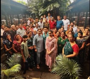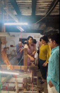 Sachin Tendulkar’s family connected with local art and culture during their visit to Maheshwar, Madhya Pradesh, took blessings of elders by touching their feet