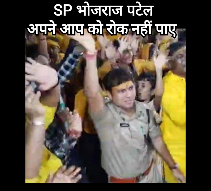 वीडियो में एसपी भोजराम पटेल माथे पर चंदन का टीका लगाए और भजन के सुरों पर थिरकते नजर आ रहे हैं। वे एक सार्वजनिक कार्यक्रम में मंच के सामने उमड़े जनसमूह के बीच अपनी उपस्थिति दर्ज करा रहे हैं, जो उनके भक्तिभाव को दर्शाता है।