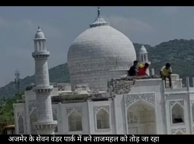 Seven Wonders Park Ajmer: अजमेर के सेवन वंडर्स पार्क को हटाने की प्रक्रिया सुप्रीम कोर्ट के आदेश पर शुरू की गई है। यह पार्क आना सागर झील के किनारे स्थित है और इसका उद्घाटन 2022 में राजस्थान के तत्कालीन मुख्यमंत्री अशोक गहलोत ने किया था। रविवार को मजदूर पार्क में स्थित ताजमहल को जमीदोंज करने जुट गए और छीनी हथौड़ा लेकर ताजमहल पर चढ़ गए.एक एक पत्थर को तोड़ने लगे पत्थरों को हटाने के लिए बुलडोजर लगाया हैं। यहां प्रशासनिक टीम और पुलिस बल तैनात है।