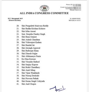 AICC ने इन 3 सीनियर लीडर्स के अलावा सभी जिलों के लिए 41 डिस्ट्रिक्ट इलेक्शन आब्जर्वर नियुक्त किए हैं। इनमें अविनाश पांडे, भक्त चरण दास, अजय राय, अनिल चौधरी, बी.वी. श्रीनिवास, जयसिंह अग्रवाल, विक्रांत भूरिया, इरफान अंसारी, रोहित चौधरी और अनिल चोपड़ा आदि शामिल हैं।