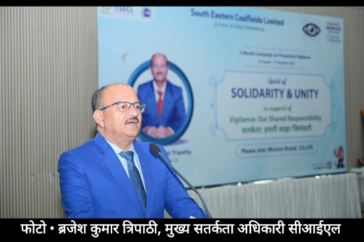आज संध्या एसईसीएल मुख्यालय स्थित औडीटोरियम में श्री त्रिपाठी द्वारा सतर्कता पर एक विशेष व्याख्यान दिया गया। एसईसीएल कर्मियों को संबोधित करते हुए श्री त्रिपाठी ने कहा कि राष्ट्र के विकास में हर कोल इंडियन का महत्वपूर्ण योगदान है। कहा जाता है कि जो जीता वही सिकंदर लेकिन मैं कहना चाहूँगा कि जो जीता वही कोल इंडियन। आप सभी की मेहनत का ही फल है कि ही में कोल इंडिया को हाल ही में भारत की 10 सबसे ज़्यादा लाभप्रद कंपनियों में स्थान मिला है।