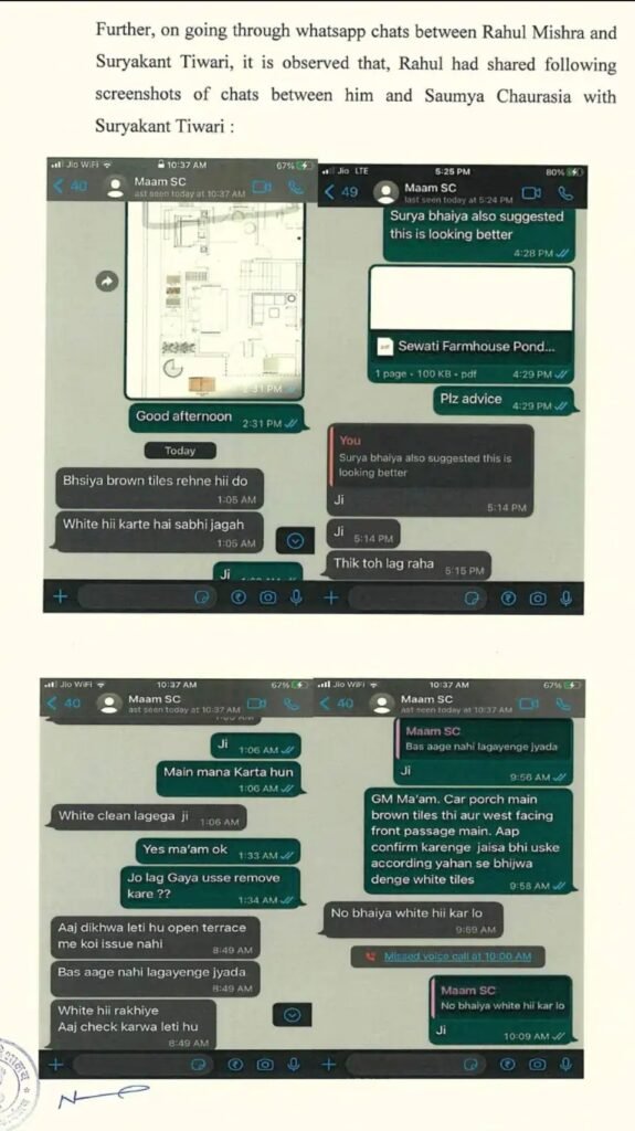 रायपुर 11 अक्टूबर 2025। छत्तीसगढ़ में पूर्ववर्ती कांग्रेस सरकार में हुए कोयला घोटाले की जांच जैसे-जैसे आगे बढ़ रही है। ठीक वैसे-वैसे जांच एजेंसिया कोर्ट में साक्ष्य के साथ सनसनीखेज खुलासे कर रहे है। जांच एजेंसियों द्वारा कोर्ट में पेश चार्जशीट में कोल लेवी के मास्टर माइंड सूर्यकांत तिवारी और सौम्या चौरसिया के साथ IAS-IPS अफसरों के साथ बातचीत के व्हाट्सअप चैट पेश की है। जिसमें पैसों की डील कोडवर्ड में किया करते थे। इस चार्जशीट में जांच एजेंसी ने एक सीनियर महिला आईपीएस अफसर सहित तीन अफसरों की भूमिका भी संदिग्ध बतायी है।