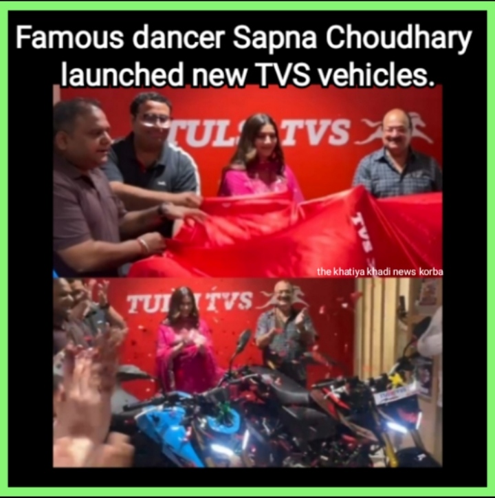 KORBA : रविवार 12 अक्टूबर को टीवीएस मोटर कंपनी की नई मोटरसाइकिलों और स्कूटरों का भव्य अनावरण तुलसी ऑटोमोटिव प्राइवेट लिमिटेड के तुलसी टीवीएस शोरूम में प्रसिद्ध हरियाणवी डांसर एवं कलाकार सपना चौधरी ने किया।