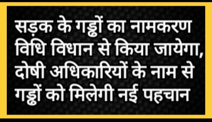 जिला प्रशासन एवं नगर प्रशासन के खोखले दावे को सामने लाने के लिए और उनकी आंखें खोलने के लिए 24 अक्टूबर से गड्ढा नामकरण अभियान भी चलाया जाएगा। इस अभियान के तहत शहर भर के जितने भी जर्जर सड़क एवं गड्ढे हैं वहां जाकर दोषी अधिकारियों के सदबुद्धि के लिए पूजन कर नामकरण किया जाएगा।