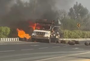 आग का गोला बना वाहन, आसमान में उठीं लपटें