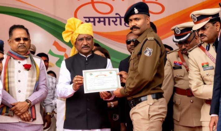 बिलासपुर। गणतंत्र दिवस के गरिमामय अवसर पर बिलासपुर जिला पुलिस बल के दो जांबाज आरक्षकों, आशिष राठौर और बीरेंद्र राजपूत को उनकी उत्कृष्ट सेवाओं के लिए राज्य स्तर पर सम्मानित किया गया। मुख्यमंत्री श्री विष्णुदेव साय ने दोनों आरक्षकों की कर्तव्यनिष्ठा और साहस की सराहना करते हुए उन्हें प्रशस्ति पत्र प्रदान किया।