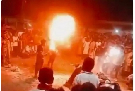 कैसे हुआ हादसा? हनुमान सेवा समिति द्वारा आयोजित इस कार्यक्रम में दुर्ग से आए कलाकारों का एक दल विभिन्न देवी-देवताओं का रूप धरकर प्रदर्शन कर रहा था। शाम को शोभायात्रा के दौरान जब कलाकार मुंह में ज्वलनशील पदार्थ लेकर आग के गोले उगलने का करतब दिखा रहे थे, तभी काली माता का रूप धारण किए महिला कलाकार की वेशभूषा ने आग पकड़ ली। देखते ही देखते आग ने विकराल रूप ले लिया। महिला को बचाने दौड़े दो अन्य कलाकार भी इसकी चपेट में आ गए।