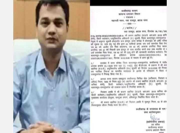 बलरामपुर-रामानुजगंज: छत्तीसगढ़ शासन ने प्रशासनिक संवेदनशीलता और जवाबदेही पर कड़ा रुख अपनाते हुए बलरामपुर-रामानुजगंज जिले के कुसमी में पदस्थ डिप्टी कलेक्टर एवं अनुविभागीय अधिकारी (राजस्व) करुण डहरिया को तत्काल प्रभाव से निलंबित कर दिया है। यह कार्रवाई बॉक्साइट के अवैध परिवहन की जांच के दौरान एक ग्रामीण की हिरासत में मारपीट और उसके बाद हुई … Read more